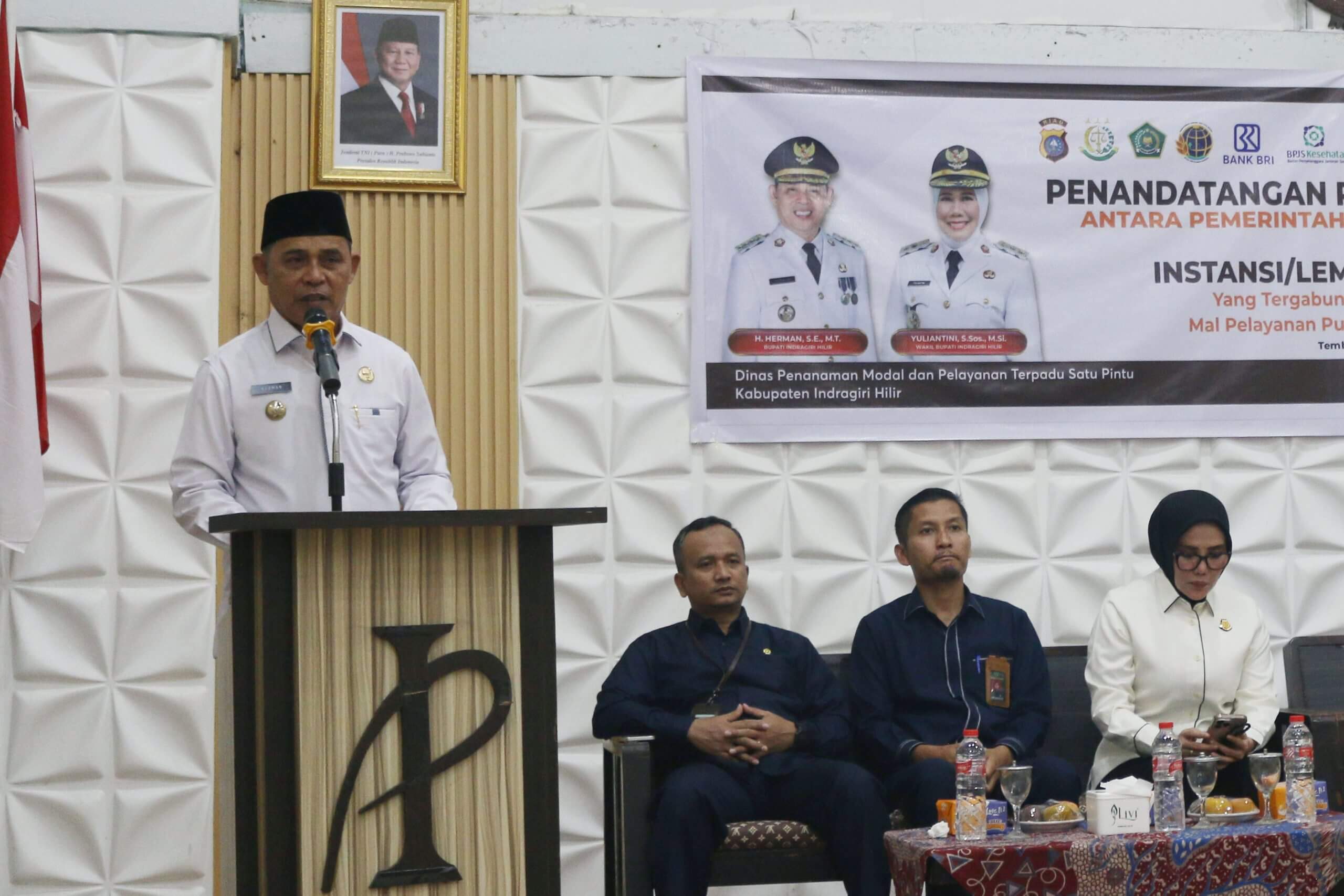Tembilahan - Pemerintah Kabupaten Indragiri Hilir melalui Dinas Penanaman Modal dan Pelayanan Terpadu Satu Pintu (DPMPTSP) menggelar kegiatan Penandatanganan Perjanjian Kerja Sama antara Pemerintah Daerah dengan Instansi, Lembaga, BUMN, dan BUMD yang tergabung dalam penyelenggaraan Mal Pelayanan Publik (MPP) Kabupaten Indragiri Hilir, Rabu (08/10/2025).